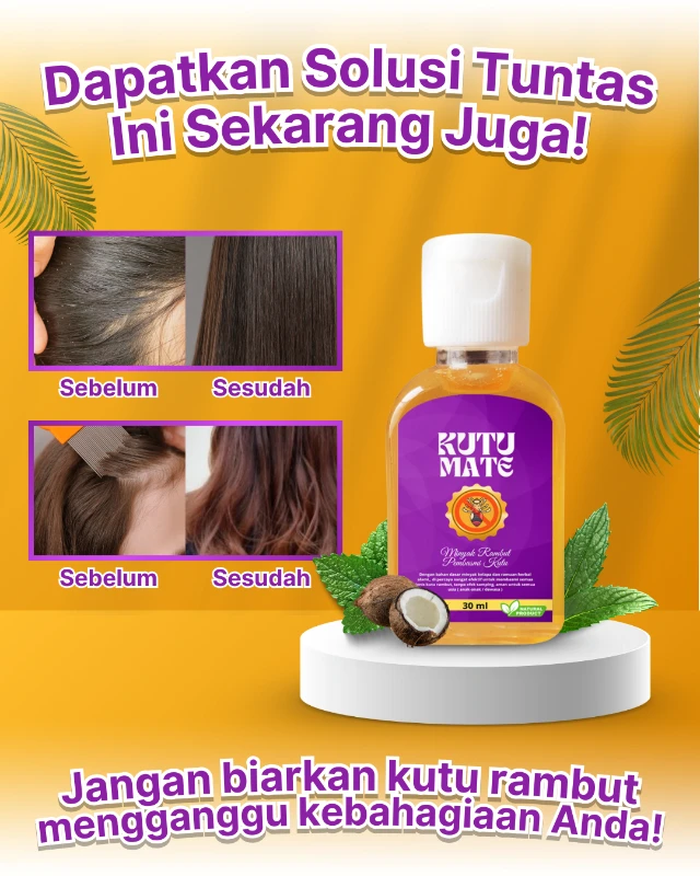 - ✅ BONUS NUTRISI UNTUK RAMBUT Saat kutu dibasmi, rambut justru jadi makin sehat! Kandungan dalam KutuMate akan menutrisi kulit kepala, mengurangi gatal, dan menjadikan rambut lebih lembut, kuat, dan berkilau. Satu solusi untuk dua masalah.