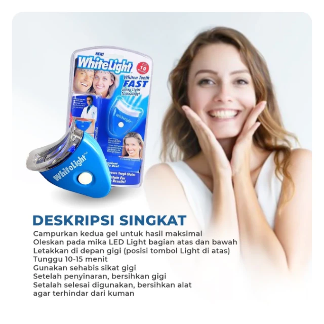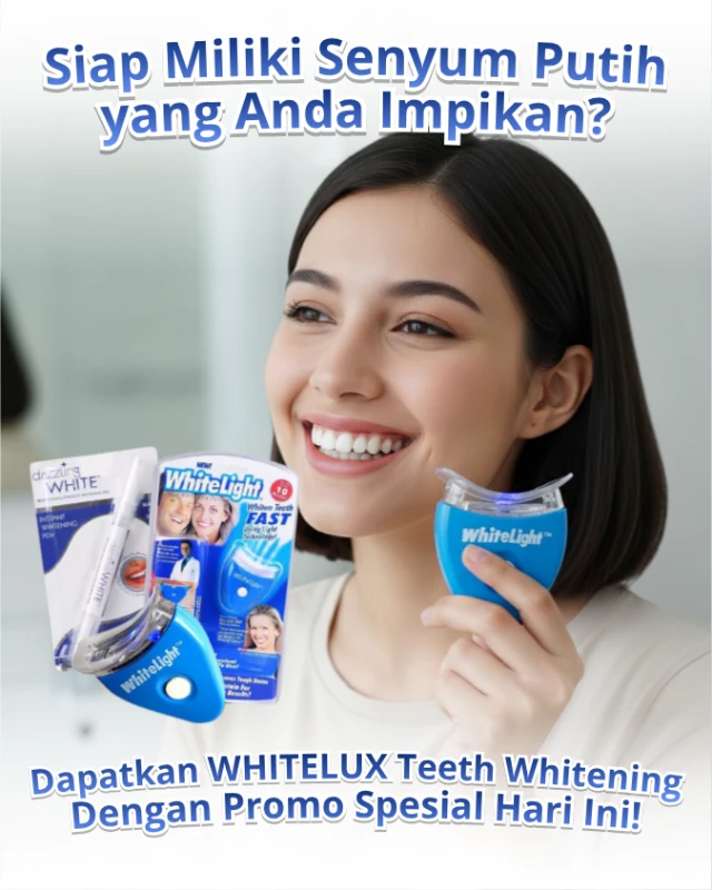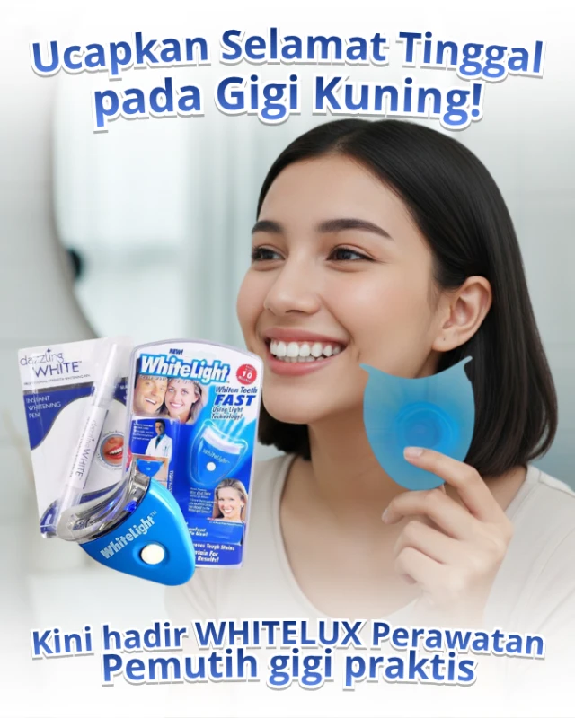 Memperkenalkan WHITELUX Alat pemutih gigi dengan teknologi Blue Light yang terbukti ampuh mengembalikan warna putih alami gigi dan sudah disarankan oleh dokter gigi.